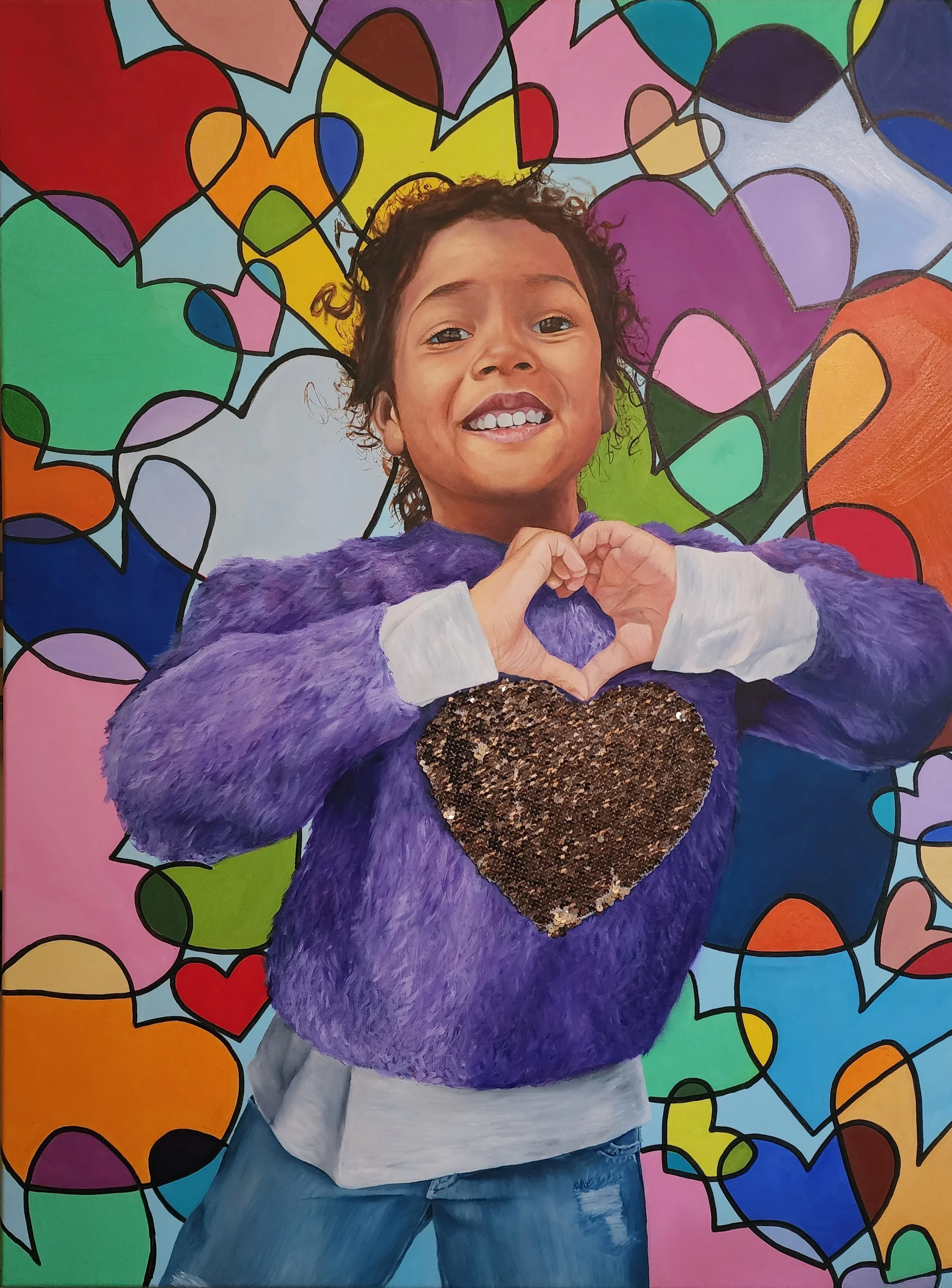 This painting represents hope. I utilized my daughter for this painting because she tends to put a smile on my face even during the worst of times. Hopefully, her energy and love depicted within this painting can crack a smile on someone else's face as well.