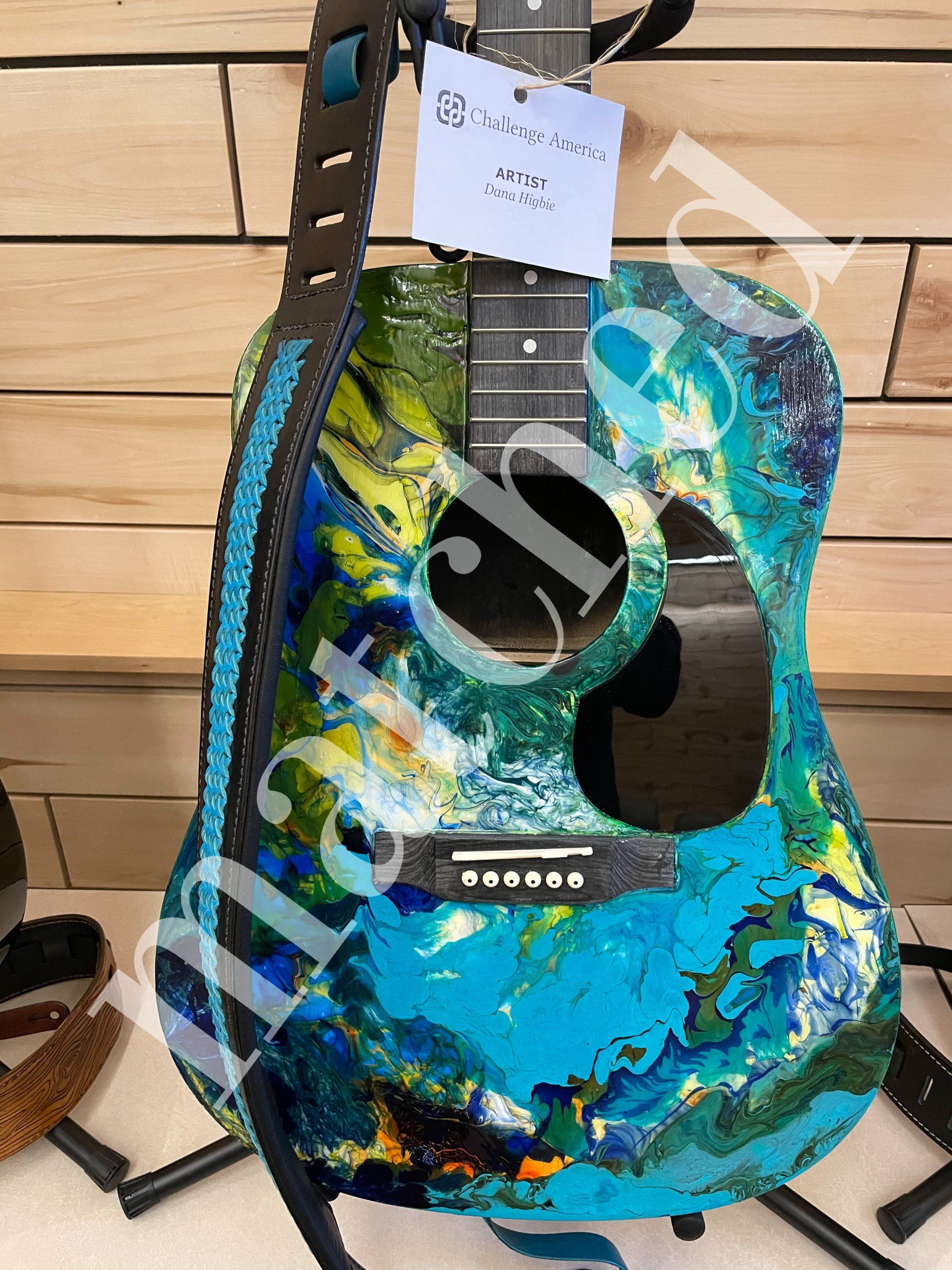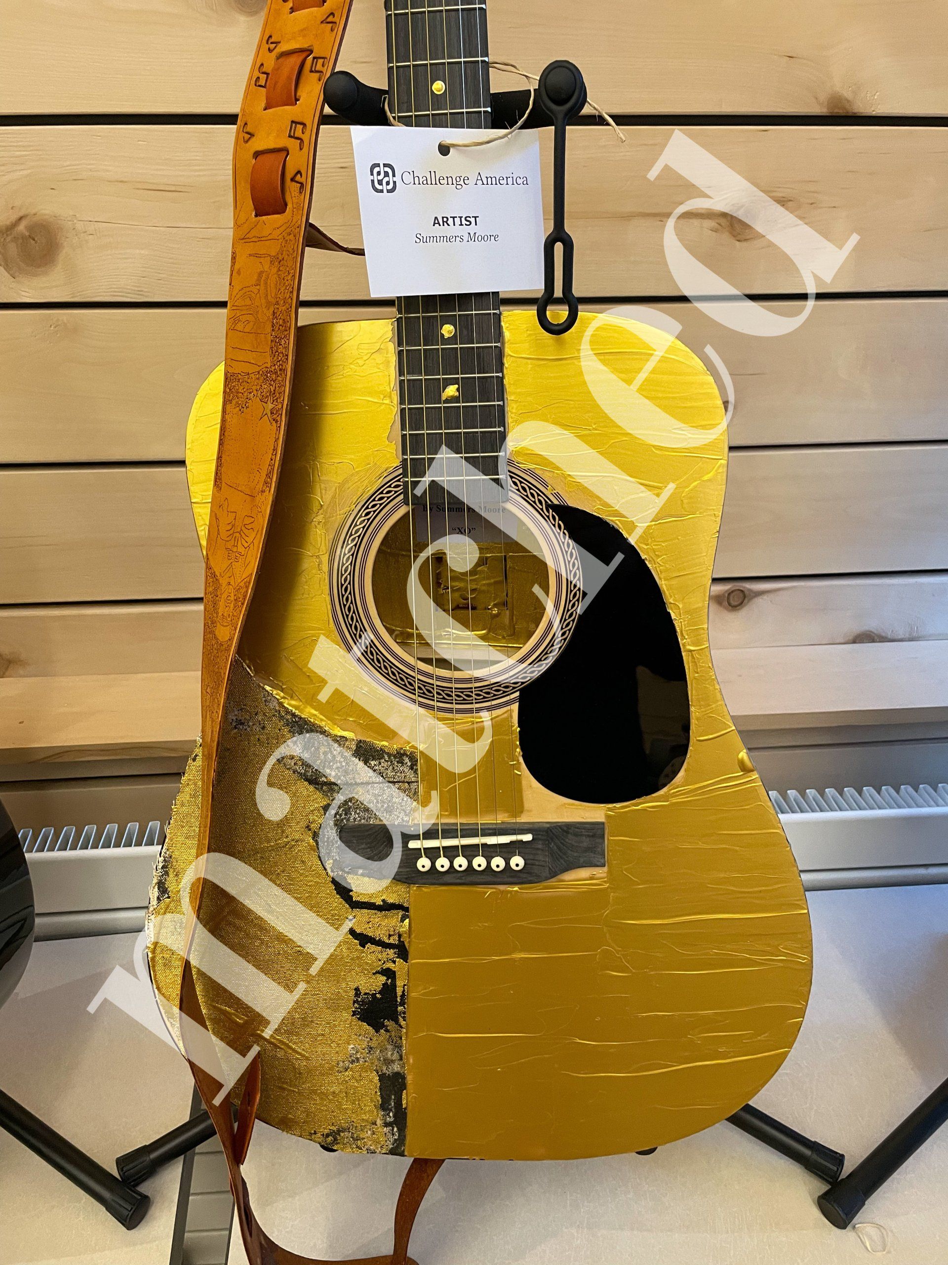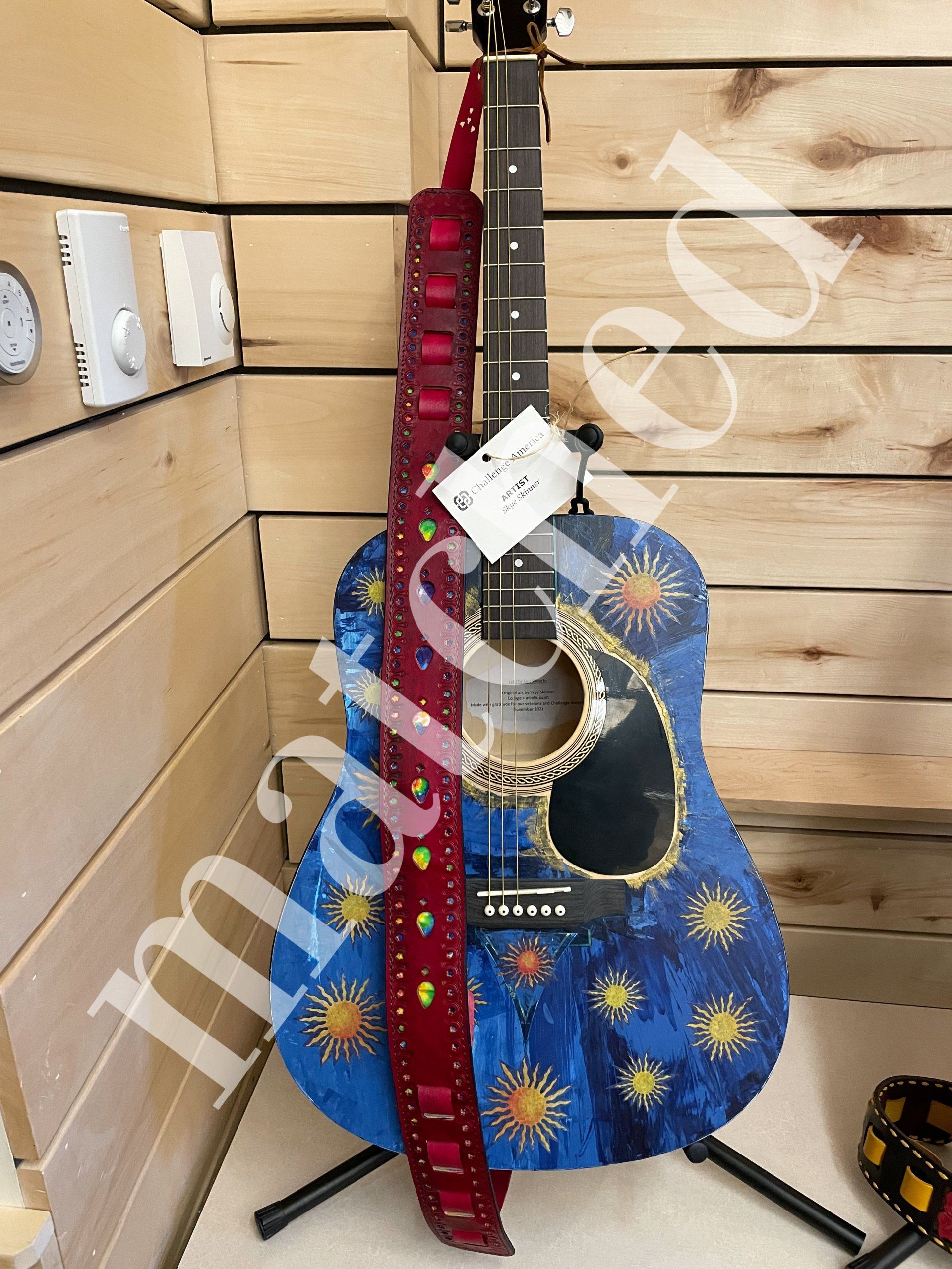 Professional artists in the Roaring Fork Valley in Colorado and the Art Guild in Muskogee, OK, decorated these guitars for Veterans participating in Challenge America's Music Therapy Program. In addition, our good friends at Tandy Leather created hand-crafted guitar straps to include with these special guitars. All guitars were donated by our friends at The Heartstrings Foundation and all will find their way into the grateful hands of Veterans.